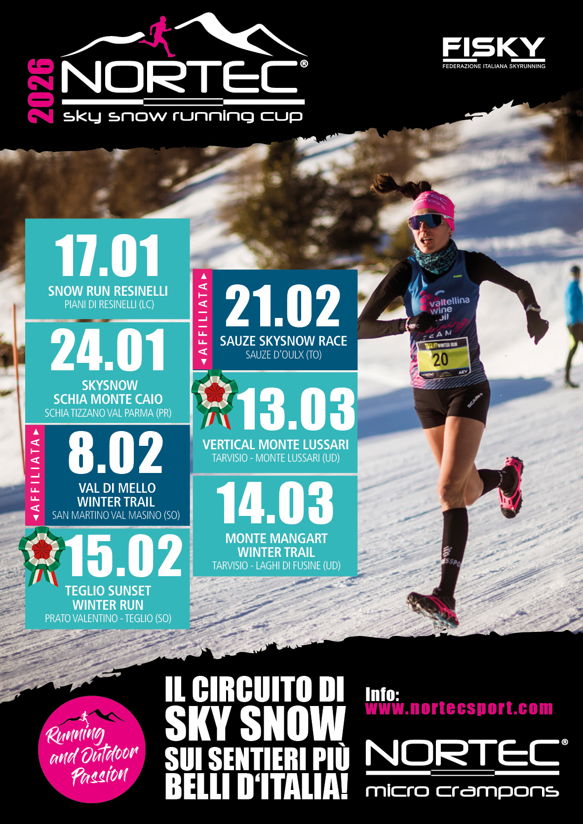 NORTEC Sport GmbH, in seguito anche “NORTEC”, organizza un circuito di gare di SKY SNOW denominato “NORTEC SKY SNOW RUNNING CUP 2026” sotto l´egida della F.I.Sky.-Federazione Italiana Skyrunning, in seguito anche “FiSky”.